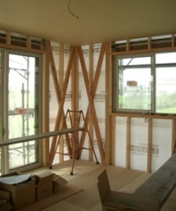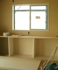2008/9/20造り付け収納 Before & After8月31日までのページ →→ ★★★ 外壁もまだ貼られていない構造体の状態。こちらへ造り付け収納を計画しています。 写真、真ん中の黒くみえる長方形はコンセントが設定される場所です。 完成!ホワイトでスッキリモダンに仕上げました~。
