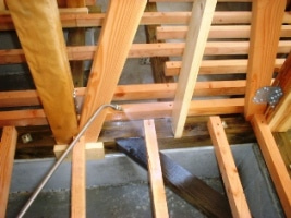 本体が立ち上がった後、さらに柱、根太にも防蟻処理をします。