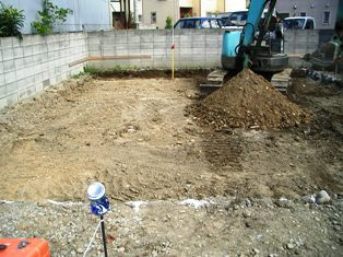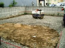 砕石を敷き込んでいきます。その後、転圧(突き固め)していきます。(基礎はベタ基礎です。)