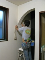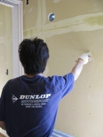 2008/10/19内装工事 ビス穴やボードの継ぎ目などを丁寧に、パテで下地処理をしてからクロスをはっていきます。 ★満足論理の家創り ★ サーロジックお問い合わせ窓口 ************************************************************************