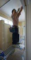 2008/10/24M邸 (板野郡松茂町) ~内装工事~ クロスを貼る前に、ビスの穴やボードの継ぎ目をパテで丁寧に埋めていきます。クロス貼りを美しく仕上げるにはこの工程の丁寧さで決るといっても過言ではありません。 ★満足論理の家創り ★ サーロジックお問い合わせ窓口