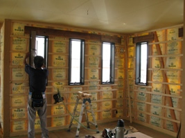 2008/11/13S邸 (阿南市上中町) ~内部造作~壁の下地は、柱の上に胴縁(どうぶち)を等間隔(30cmピッチ)に入れます。このようなちょっとした作業が、実は大切になってきます。 ★満足論理の家創り ★ サーロジックお問い合わせ窓口 **********************************************************************************