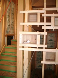 2008/11/15Y邸 (徳島市多家良町) ~ニッチ下地~ 18ヶ所のニッチ下地たち、全員集合!!ニッチ下地をバランスよく、壁の中に組み込んでいきます。 ★満足論理の家創り ★ サーロジックお問い合わせ窓口 **********************************************************************************