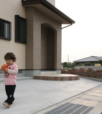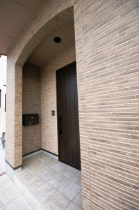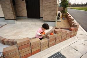 玄関ポーチ付近まで、レンガ積みの塀を施工しました。