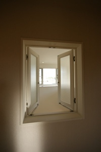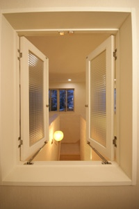 また、オリジナルな空間演出を考慮し、室内窓のガラスにはチェッカーガラスを選択しました。