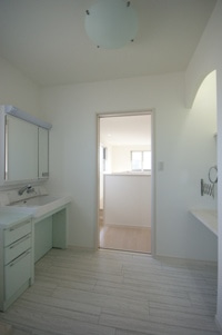 お水のでる洗面所に化粧台があることで、案外、導線も短くなって、とっても便利です。