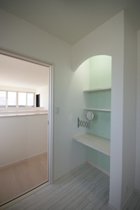 洗面所に化粧台をもうけました。 名づけて “乙女チックコーナー