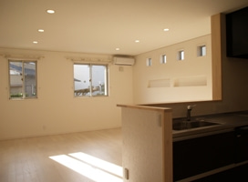 限られた土地条件の中、お部屋を広々使えるよう、設計しました。