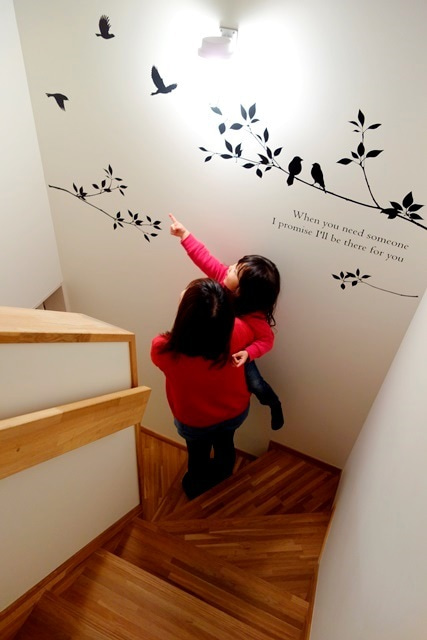 2014/1/25ウォールステッカー 完成!子供たちもお手伝いしてくれ小鳥が舞う踊り場が完成しました。登ったり降りたり、どの角度から眺めても階段が楽しい空間となり、新築後、2年経過した我が家ですが とても新鮮な気分になりました。マスキングテープのようにいつでも 剥がせるのも いいところです★サーロジックのホームページヘ ★ 今、ご覧いただいているのはサーロジックの ブログのページ です