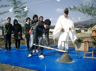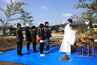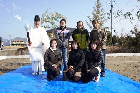 2014/2/17地鎮祭 O邸 脇町拝原★工事の進捗状況★ O様 脇町拝原取説 ⇔ 完成 ⇔ 内壁工事 →現場にて → 断熱材 → 階段下 → 窓サッシ → 瓦葺き → 上棟 → 建て方 → 基礎配筋 → 遣り方 → 電柱移設 → 地盤改良 → 地鎮祭 脇町拝原にて O様邸の地鎮祭を執り行いました。おめでとうございますO様は 5年前ご両親様に母屋 ← をお建ていただいておりこの度の新築は、ご子息様のお家になります非常にありがた く感謝申し上げます皆様にお喜びいただけますようより一層、頑張らせていただく所存でございます 皆様で記念撮影★サーロジックのホームページヘ ★ 今、ご覧いただいているのはサーロジックの ブログのページ です