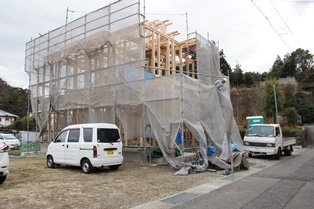 2014/2/20上棟 N邸 徳島市上八万町★工事の進捗状況★ N様 徳島市上八万町通り土間 ⇔ 見学会のお知らせ ⇔ 踏み石 → 外観 → 内壁工事② → 内装工事 → 内壁工事 → 外壁 →断熱材 → 外壁下地 → 木工事 → 構造体 →上棟後 → 上棟 → 建て方 → 基礎 → コンクリート打設 → 基礎配筋 → 捨てコン → 掘方 → 遣り方 → 地鎮祭上八万町のN様邸の上棟のご様子ですおめでとうございます施主様の代わりにお神酒を棟木へ棟を上げる前↑棟を上げた後↓クレーン作業が終わったので足場にシートをかけていっています。★サーロジックのホームページヘ ★ 今、ご覧いただいているのはサーロジックの ブログのページ です