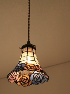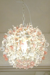 淡いピンクが混じったガラス細工のかわいらいい照明