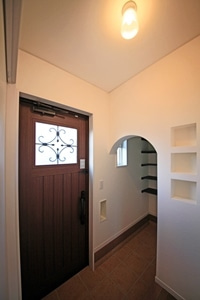 2014/3/26賃貸住宅とは思えない玄関シューズクローク★工事の進捗状況★ A様 阿波町シューズクローク ⇔ 完成 → 外壁下地 → サッシ枠 → 構造体 →上棟 → 建て方 → 基礎 → 基礎配筋 → 土壌処理 → 砕石 → 転圧 → 地鎮祭 こちらは以前ご紹介した「四つ子ちゃんハウス」の 玄関シューズクローク賃貸住宅とは思えない贅沢な間取りです。 丸くかたどった入口や、ニッチの配置がかわいいですね玄関全体をご覧いただくと・・・ 建具はなくても、玄関扉よりも入口を低くすることでおしゃれに見せられる収納スペースの出来上がり★サーロジックのホームページヘ ★ 今、ご覧いただいているのはサーロジックの ブログのページ です