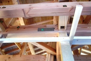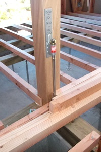 柱や梁の枠組みで主に支え、接合部は金物で強化します