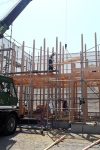 2014/4/29建て方 U邸 北島町鯛浜★工事の進捗状況★ U様 北島町鯛浜リビング ⇔ 玄関 ⇔ 外観 ⇔ 上棟後 → 上棟 → 建て方 → 土台敷き → 捨てコン → 土壌処理 → 掘り方 → 着工 → 遣り方 → 地盤地耐力調査 → 地鎮祭 ★サーロジックのホームページヘ ★ 今、ご覧いただいているのはサーロジックの ブログのページ です