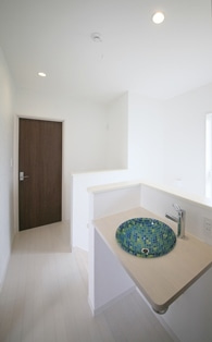 2014/5/27モザイク洗面ボウル K邸 脇町西赤谷★工事の進捗状況★ K様 脇町西赤谷施工事例紹介 ⇔ 内装 ⇔ 外観 ⇔内壁下地 →内部造作 → 木工事 → 外壁シート → 上棟後 →上棟 → 建て方 → 基礎配筋 → 土壌処理 → 砕石 →掘方 → 遣り方 → 地鎮祭K様 邸 テーマは● 飽きのこないシンプルな家 ● ホワイトオーク調の床と白い壁がすっきりとした印象を与えてくれます こちらは寝室リビングとは対象的なモダンな雰囲気壁一面の大きな収納も魅力的そして今回のブログタイトルの・・・ ブルー系のモザイク洗面ボウル爽やかな色合いがキレイに溶け込んでいますねそれでいて存在感もばっちり★サーロジックのホームページヘ ★ 今、ご覧いただいているのはサーロジックの ブログのページ です