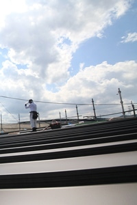 太陽の光を浴びながらの屋根工事