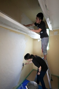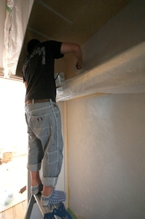 自らの手で 壁に珪藻土(けいそうど)塗りをされる 施主様