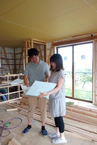 2014/8/27現場にて O邸 脇町拝原★工事の進捗状況★ O様 脇町拝原 取説 ⇔ 完成 ⇔ 内壁工事 →現場にて → 断熱材 → 階段下 → 窓サッシ → 瓦葺き → 上棟 → 建て方 →基礎配筋 → 遣り方 → 電柱移設 → 地盤改良 → 地鎮祭 施主様 製本をご覧いただきながら現場のチェック じーーーーーーーーっ …っと窓を眺めているご主人どのような構想を練っているのでししょう そして…ココはいったいどのような仕上がりになるのでしょう★サーロジックのホームページヘ ★ 今、ご覧いただいているのはサーロジックの ブログのページ です