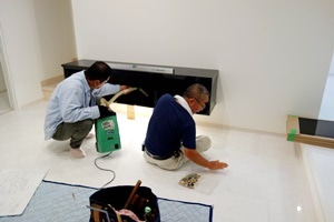 2014/9/13テレビボード設置中・・・ I邸 北島町★工事の進捗状況★ I 様 北島町完成♪ リビング → TVボード →取説 → お引き渡し → 外観 → 施工中へ ・・・内装工事が完了してから 下地を入れておいた壁へ壁掛けテレビと 家具をとりつけています。 床一面 真っ白なおしゃれなリビングにTVボードを空中にうかすため家具職人さんが TVボードを取り付け中です。 実際にTVも設置置かず に 掛けたTVとTVボードの位置バランスが絶妙で、すっきりとした仕上がりデス★サーロジックのホームページヘ ★ 今、ご覧いただいているのはサーロジックの ブログのページ です