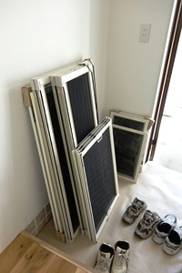 家が完成後、最後に取り付ける網戸↑です。