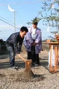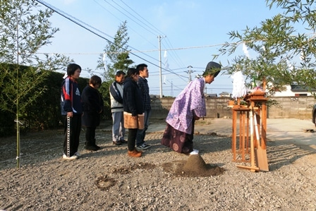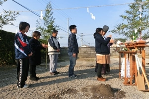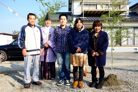 2014/11/24地鎮祭 F邸 国府町芝原 ★工事の進捗状況★ F様 国府町芝原基礎配筋 → 捨てコン → 土壌処理 → 転圧 → 掘方 → 地鎮祭 国府町 F様の 地鎮祭が行われましたF様 おめでとうございます 神主さんの唱える祝詞が青空に響きます 工事が無事に、安全にすみますように…施主様・神主さん・現場監督…皆でお祈りします 記念に1枚っF様 どうぞこれから宜しくお願い致します★サーロジックのホームページヘ ★ 今、ご覧いただいているのはサーロジックの ブログのページ です