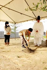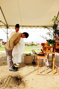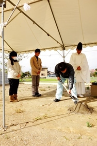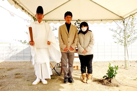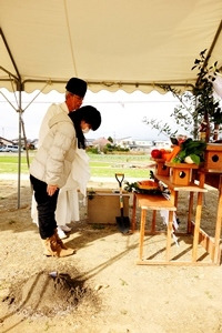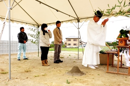 2014/12/2地鎮祭 N邸 国府町川原田★工事の進捗状況★ N様 国府町川原田上棟 → 建て方 → 土台敷き → 浄化槽埋設 → コンクリート基礎 →型枠 → コンクリート打ち → 基礎配筋 → 捨てコン →防湿シート → 土壌処理 → 砕石 → 遣り方 → 地耐圧検査 → 地鎮祭 国府町 N様 の地鎮祭N様 おめでとうございます!!当日の朝は一段と冷え込んでいましたがお天気には恵まれました これから始まる工事が無事、安全に進みますように…地鎮祭の記念にN様&神主様でN様 どうぞ宜しくお願いいたします★サーロジックのホームページヘ ★ 今、ご覧いただいているのはサーロジックの ブログのページ です