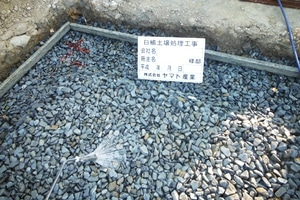 2015/1/20土壌処理 N邸 国府町川原田★工事の進捗状況★ N様 国府町川原田上棟 → 建て方 → 土台敷き → 浄化槽埋設 → コンクリート基礎 →型枠 → コンクリート打ち → 基礎配筋 → 捨てコン →防湿シート → 土壌処理 → 砕石 → 遣り方 → 地耐圧検査 → 地鎮祭 ★サーロジックのホームページヘ ★ 今、ご覧いただいているのはサーロジックの ブログのページ です