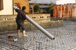 2015/1/14先行配管 M邸 羽ノ浦町★工事の進捗状況★ M様 羽ノ浦町コンクリート打ち → 先行配管 → 基礎配筋 → 捨てコン →土壌処理 → 砕石・地業 → 遣り方 → 地耐圧検査 → 地鎮祭 大人の男性でもちょっと運ぶのが大変な長~い筒…??! 職人さんが運んでいるのはコンクリート工事をする前に設置する「先行配管」です★サーロジックのホームページヘ ★ 今、ご覧いただいているのはサーロジックの ブログのページ です