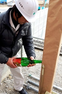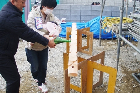 2015/2/14上棟 N邸 国府町川原田★工事の進捗状況★ N様 国府町川原田瓦葺き → 屋根防水工事 → 上棟後 → 上棟 →建て方 → 土台敷き → 浄化槽埋設 → コンクリート基礎 →型枠 → コンクリート打ち → 基礎配筋 → 捨てコン →防湿シート → 土壌処理 → 砕石 → 遣り方 → 地耐圧検査 → 地鎮祭 先日はN様 の上棟式おめでとうございますまだ幼いお子様がいらっしゃるので、施主様とご一緒に御神酒をかけていきました続きは代わりに現場監督が進行施主様・監督・大工さん……今後の工事も無事に進むよう、皆で祈ります★サーロジックのホームページヘ ★ 今、ご覧いただいているのはサーロジックの ブログのページ です
