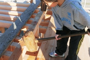 掛矢(かけや)をしっかりもって 棟を叩く音が響き渡りました。
