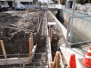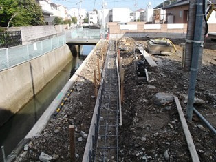 ブロック塀のための基礎配筋↑