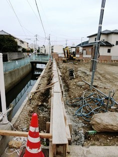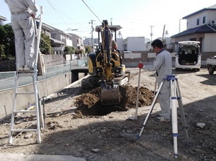 工事にかかる前に、敷地境界にブロック塀をつくります。