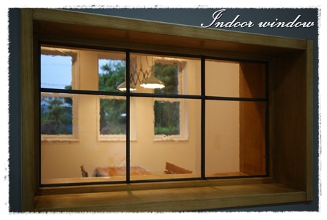 カフェ窓:室内窓 越しにキッチン窓、そして田園風景。