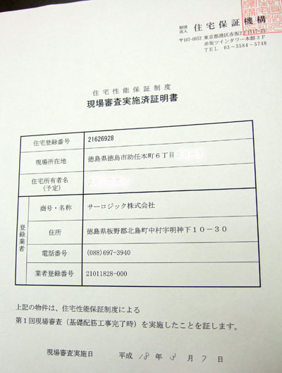 住宅性能保証制度による、第1回現場審査(基礎配筋工事完了時)がありました。