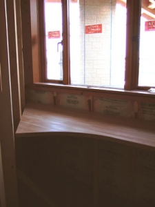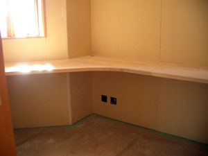 2006/4/27F邸 (羽ノ浦町) ~書斎~隠れ家的書斎です。 こちらの机も造り付けでナラ材(オーク)です。 後に、塗装で着色します。 パソコン用のコンセントもばっちり。 机の配線取り回しのための穴、高さも全て施主様の使いやすいようにオーダーしてあります。