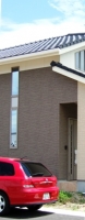 2006/7/15H邸 (鳴門市高島) ~西側より~西側から見たところです。 どことなく奥ゆかしくてかっこいいですね。空の色もきれいです。縦長の窓は、樹脂サッシ + Low-E硝子で断熱性をUPしています。