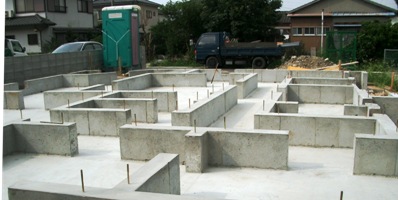 型枠が外れ、次は土台敷きです。