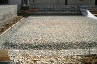 根切りした底を十分に突き固めた後、砕石を敷き詰めて、十分に突き固めています。
