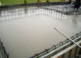 耐圧盤をするため、コンクリートを流しいれています。
