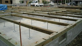 木材が緑色にみえるのは、加圧注入で防蟻処理をしているためです。