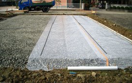防湿シートの重なりは150mm以上必要で、隙間なく敷くことが大切です。