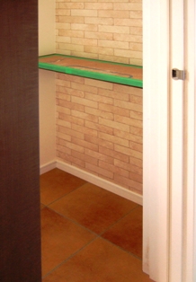 裏口になる土間なのですが、ちょっと手を加えて一部タイルを埋込みました。ただの土間からお洒落な土間に早変わり!?