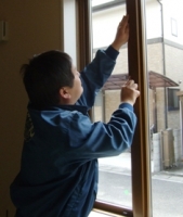 サッシの開閉調整及び確認を行っています。