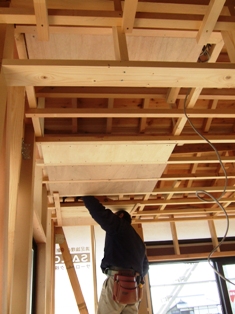 2008/3/25Y邸 (板野郡藍住町) ~先行スピーカー配線及び下地施工~リビングに5.1chサラウンドシステムを計画↓はその為のプロジェクター、スピーカー及びスクリーン取付用の下地施工をしているところです。 先行配線は・・・RGBコード、Sコード、Dsub15ピン、HDMI、スピーカー配線用配管を予定。 また、ただのリビングシアターではなく遠隔操作により、画像をプロジェクターに配信できる工夫などを 折りこんでいます。