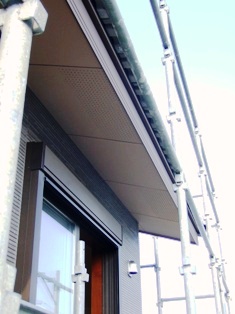 2008/3/28Y邸 (板野郡藍住町) ~塗装工事~ 破風と軒天の塗装をしています。 写真では分かりづらいのですが塗装色を微妙に変えてあります。細かな事ですが、このような積み重ねが実は意味があるのです。 サーロジックでは軒樋・竪樋・破風・軒天・水切り・屋根・外壁・サッシ・建具・建具枠 巾木・床材・カウンター・階段etc・・・仕上げ材全てのものを お客様のイメージで仕上がるような カラーコーディネートをご提案しています。