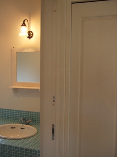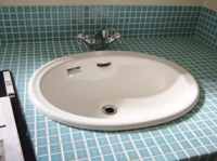 2008/4/1K邸 (海部郡美波町) ~かわいい造り付け洗面台~お気に入りの洗面台から始まる一日。毎朝、お気に入りの洗面台で顔が洗えるって素敵ですね。 これから、洗面ボール周りのコーキング。 洗面台下にタオルバー取付、ポップアップ水栓金具取付で完成です。完成しましたら写真UPします・・・