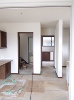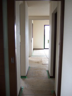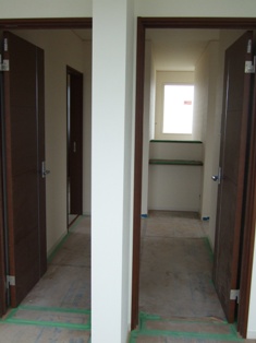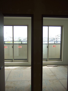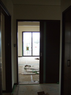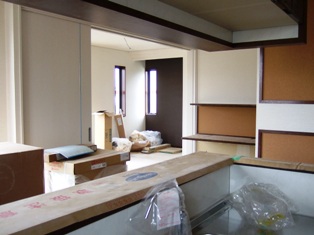 2008/4/14Y邸 (板野郡藍住町) ~広がりを感じられる空間設計~ 空間に広がりを感じさせる設計のコツは目線の先にあります。 目先を空間の遠いところへ届く工夫をすることで実際の坪数以上に 広く感じることができます。窓の大きさ・取り付け位置、飾り棚の位置、クロスの色、間取りetc・・・全てがバランスよく計画される事で、心地よい広がりの空間設計につながります。