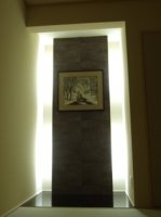 2008/5/6和室床の間(間接照明の使い方)間接照明の使い方もいろいろあります。 写真の例は飾るものに直接ライトアップするのではなくその後ろをライトアップすることで、まるで光の中にそのものがつつまれているかのように演出した例です。