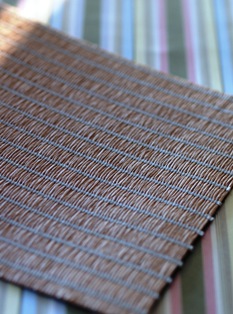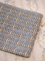 2008/6/10畳あれこれ・・・ ↑こちら全て畳表になります。 紙(天然素材)を柄で織った「倭詩」という商品です。 畳敷きといえば和風ですが、組み合わせによってはすっかり洋風にもなるおもしろい素材です